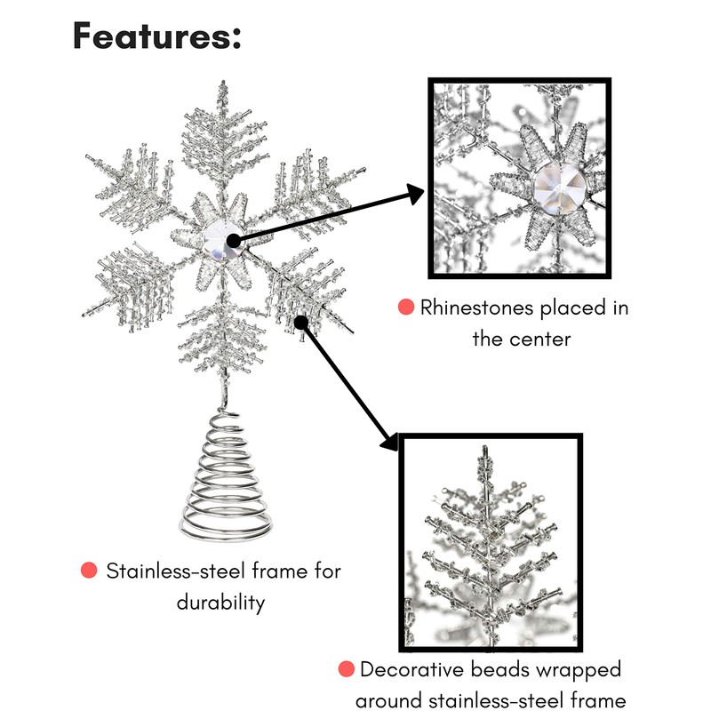 - HEAVY & DURABLE: tree topper is made from high quality stainless-steel giving you a topper that will last Christmas after Christmas. Decorative beads and rhinestone are wrapped around the frame with metal string ensuring they will stay attached