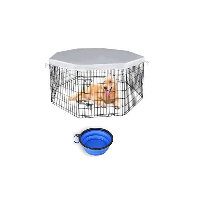 Birdtown Traders Dog Playpen Cover - Sun/Rain Proof Top Cover Gives Shade & Security for Indoor/Outdoor - Fits 24" Wide, 8 Panels Exercise Pen - Bonus Water Bowl