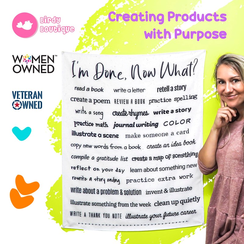 Birdy Boutique “I’m Done, Now What?” Classroom Tapestry – 29" x 36" Fast Finisher Activity Chart – Educational Wall Hanging for Elementary, Homeschool, or Kids Room