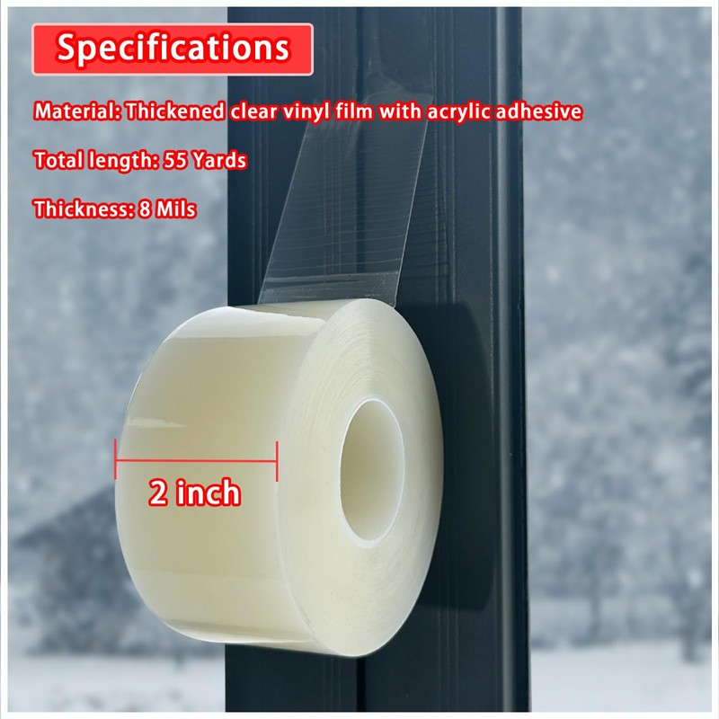 Birllaid Birllaid Transparent Window Weather Sealing Tape, 2-Inch x 55 Yards, Window AC Insulation Sealing Film Tape, No Residue, Clear