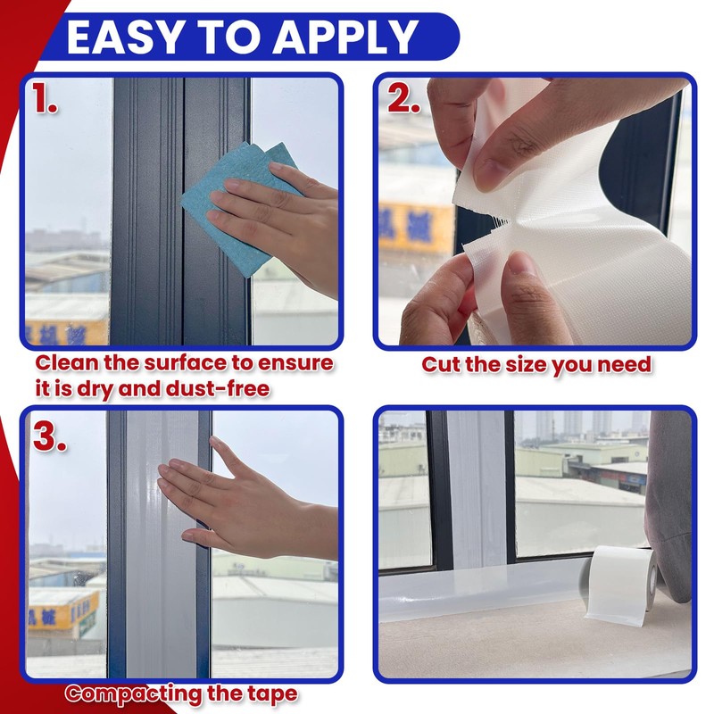 - No Residues Window Sealer Tape : Our window weather sealing tape is made with cloth-based and hot melt adhesive material, it has a strong tack and adhesion to provide a long-lasting seal. The window seal tape can remove without damaging the windows or doors, not lift the paint from your windows or doors, and will not leave a residue
