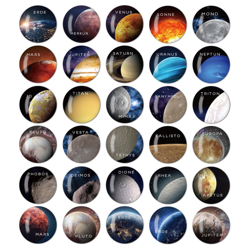 - High-quality material: the magnetic fridge is made of safe and non-toxic resin, a soft magnetic back, clear crystal glass and soft rubber magnets. Solid cabochon with a light and smooth glass-like effect. Avoid surface damage and achieve excellent adsorption. The magnets are perfectly decorated with high-resolution planet images, making it a fun souvenir on the theme of space.