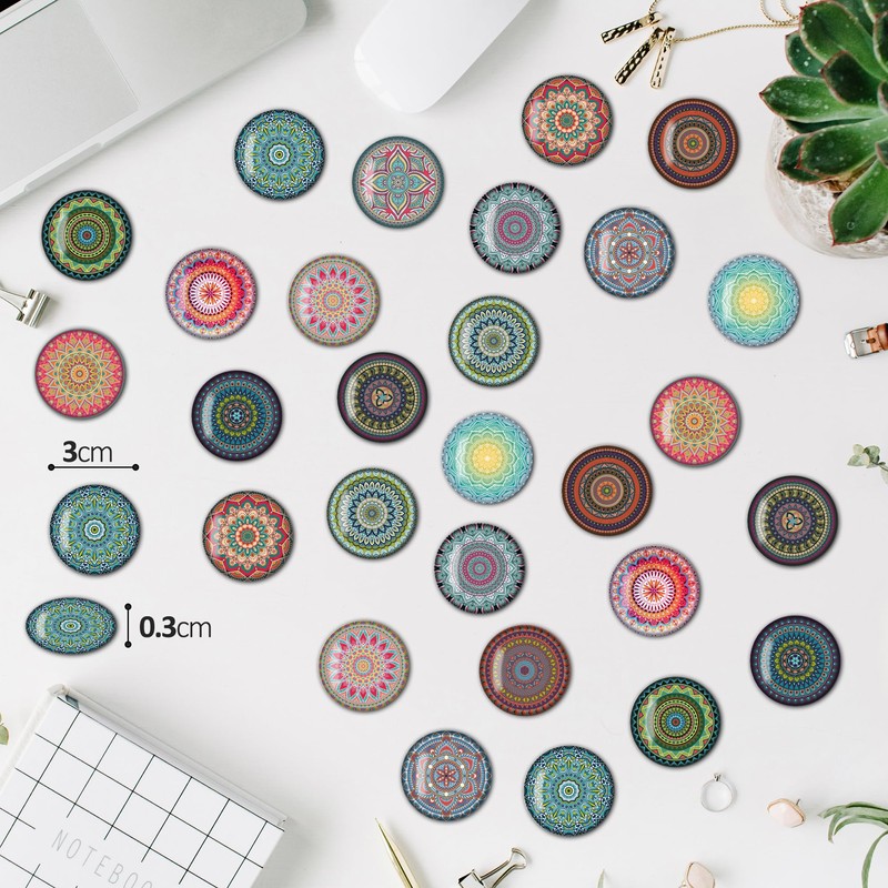 BIROYAL Set of 30 Fridge Magnets, Fridge Magnets, Decorative Magnets Bohemian Style, 3D Magnets for Magnetic Board, Fridge, Whiteboard, Kitchen, Notice Board, Office, Children and Adults (Round/30 mm)