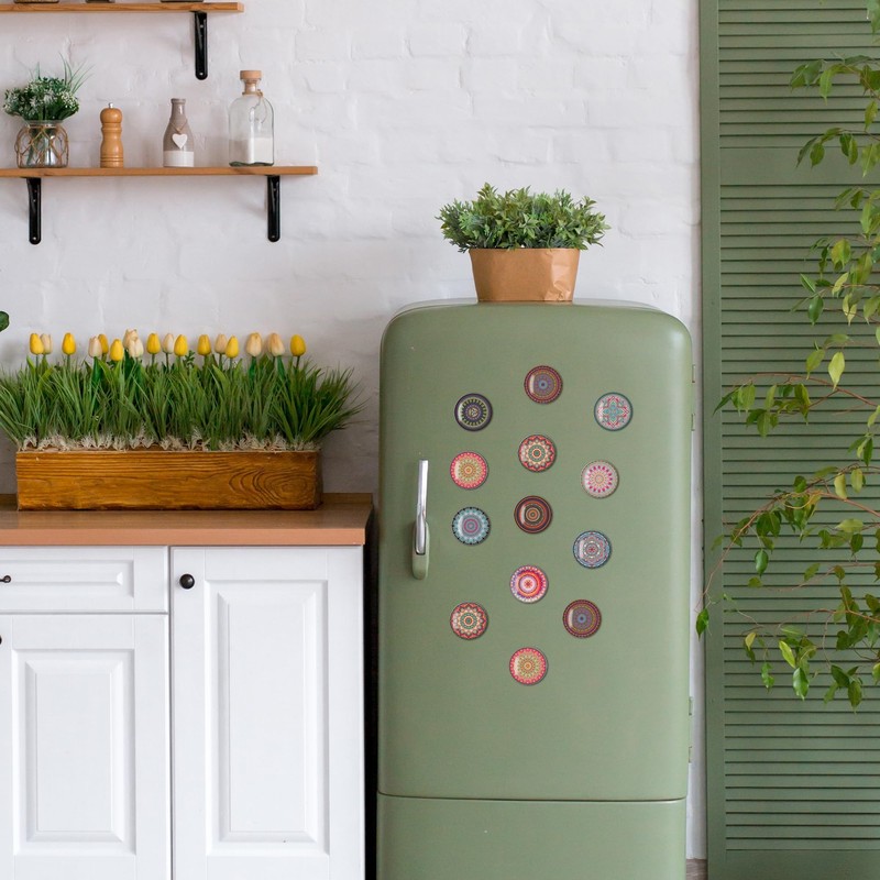 BIROYAL Set of 30 Fridge Magnets, Fridge Magnets, Decorative Magnets Bohemian Style, 3D Magnets for Magnetic Board, Fridge, Whiteboard, Kitchen, Notice Board, Office, Children and Adults (Round/30 mm)