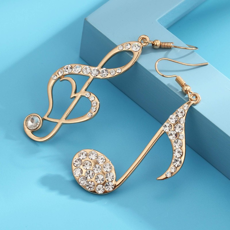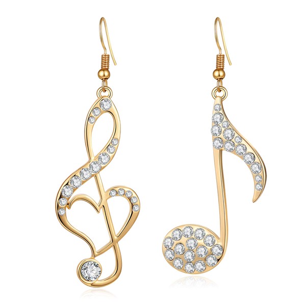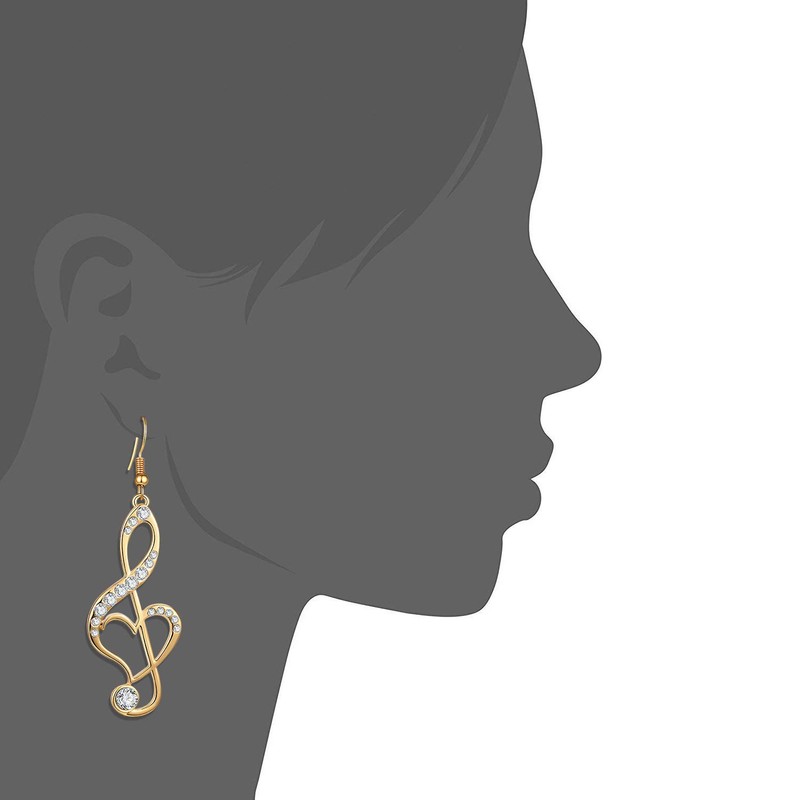 BIRSTONE Treble Eighth Music Clef Note Fish Hook Dangle Earrings (H-gold)