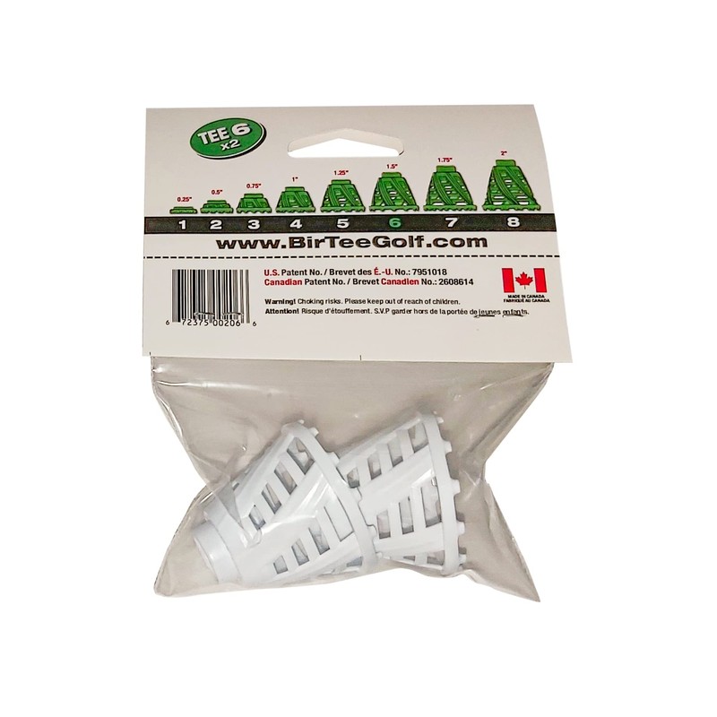 - Reusable, durable, and recyclable. A size to suite any club. These individual packs are available in 8 different sizes so you've a tee size for any club you wish to use off the tee box. Whether it's a driver, hybrid, iron or wedge, Birtee is perfect for you. See our other listings for the other sizes.Conforms to USGA and RCGA Rules of Golf. Made In Canada.