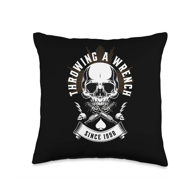 Birth Year 1998 Throwing a Wrench Skull Sparkplugs Throw Pillow