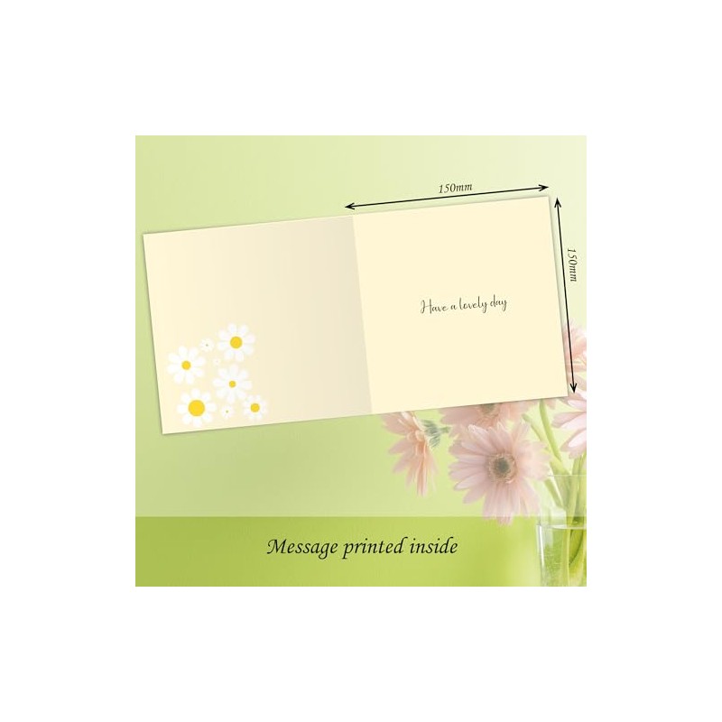 Birthday Card. Daisy design with Gold Foiled text. Card size 150x150mm supplied with envelope. Eco-friendly. Message inside. Printed and Packed in UK.