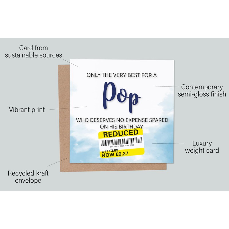 Birthday Card for Pop, Funny Pop Birthday Card, Reduced Sticker, Humorous Card, Only The Very Best for my Pop on his Birthday, Birthday Card for Men, 148mm