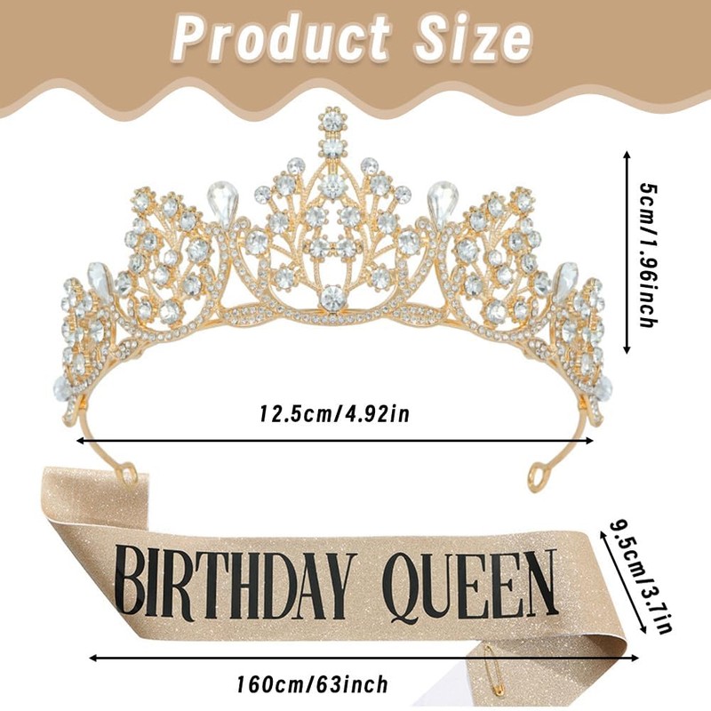 - Bridal crystal headband crown: the queen tiara made of high-quality alloy. Birthday sash is made of high-quality fabric, the fabric is soft and the glitter does not fall off easily. The inscription 'BIRTHDAY QUEEN' on the belt gives it a different meaning and makes the girl unique and personal on her birthday. The belt is equipped with a delicate safety bead pin, which not only secures the belt, but also gives the overall look a sense of sophistication.