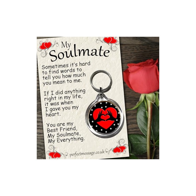 Birthday Gift for Boyfriend Girlfriend, Soulmate Gifts Keyring, 70mm, Love Design with Hands and Hearts, For Him, Her, Wife or Husband, Christmas, Birthdays