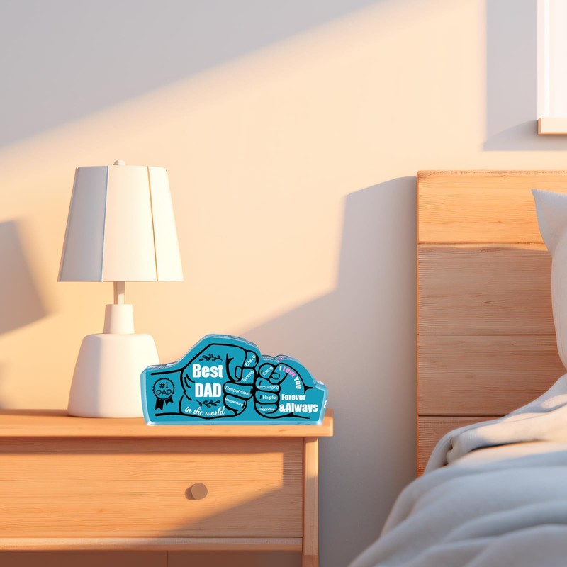 Birthday Gifts for Dad Father - Cool Dad Presents from Daughter, Son - 8 x 3.8 inch Acrylic Fist Bump Plaque - Heartwarming Dad Christmas Thanksgiving Gift Ideas Desk Decorations-Blue