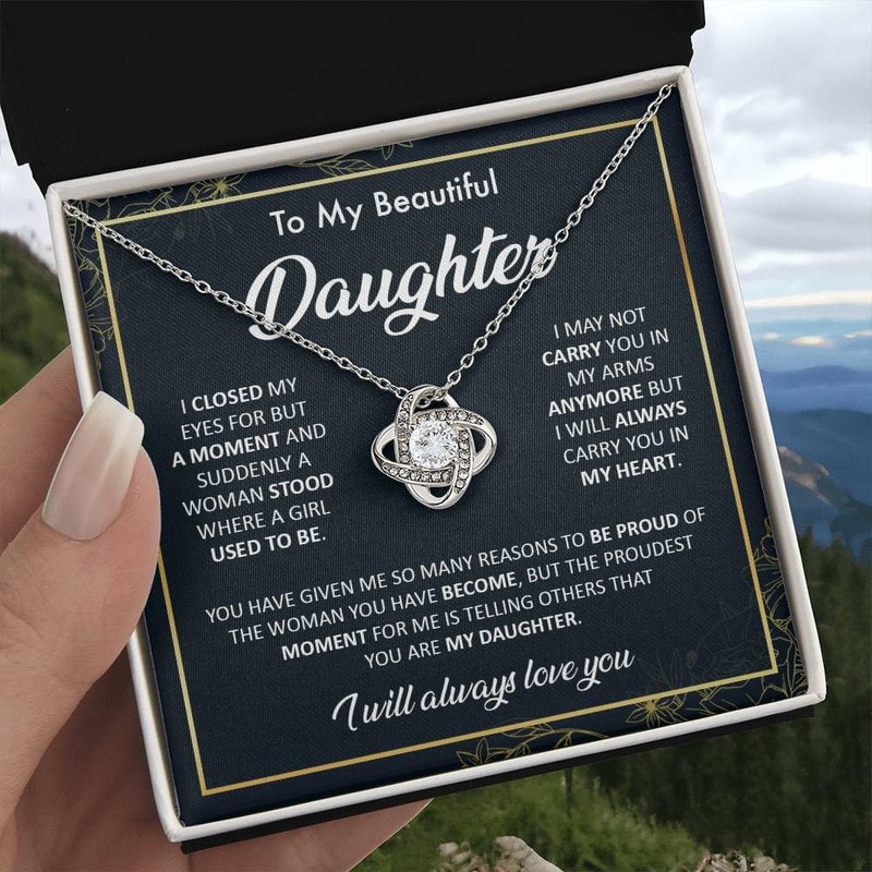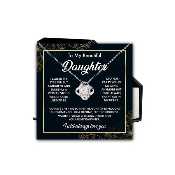 - 【To My Daughter Necklace】-- Love Knot necklace with meaningful message, is the perfect necklace to give your Wife on her Valentine, Anniversary, Birthday, Wedding, Christmas, Thanksgiving,