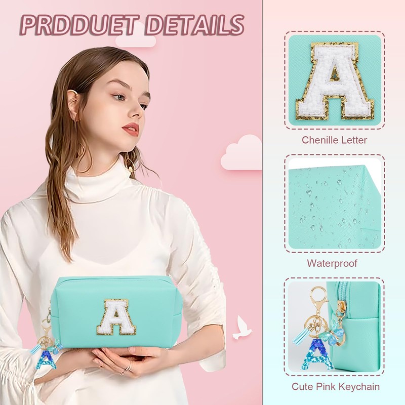 - 【HIGH QUALITY MATERIAL】: The cosmetic bag is made of high quality PU leather, which is not only waterproof and scratch-resistant, but also durable. You can travel with your cosmetics or toiletries in this bag without worrying about damage to your items. The monogrammed metal keychain pull ensures that your belongings are kept safe and organized inside the bag. This makeup bag is also easy to clean and can be easily wiped clean with a damp cloth.