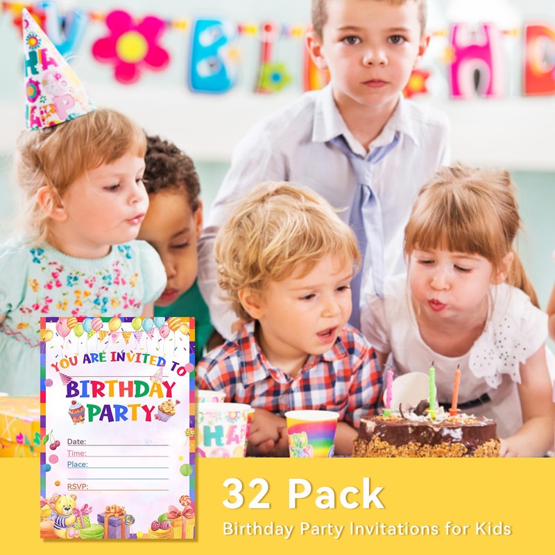 Birthday Invitation Cards -32PCS for Children,Birthday Party Invitation for Boys and Girls, Celebration Invitation for Teenagers(Orange)