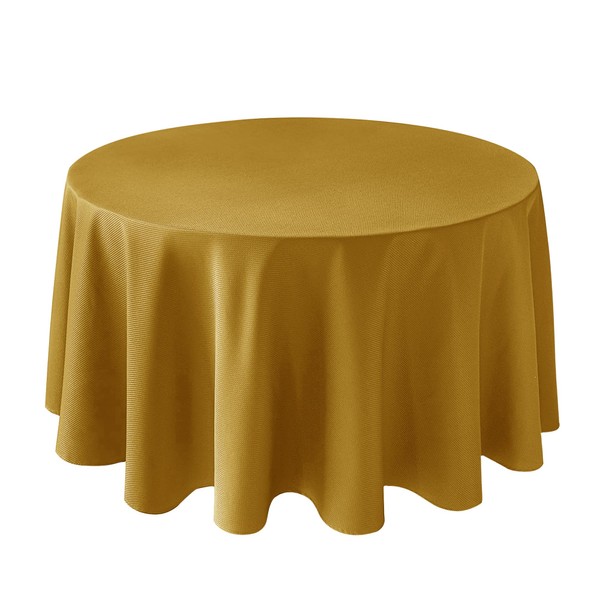 Biscaynebay Textured Fabric Round Table Cloth 90", Gold Water Resistant Washable Tablecloths Circle Folding Table Covers Linen for Dining, Kitchen, Wedding, Parties, etc.
