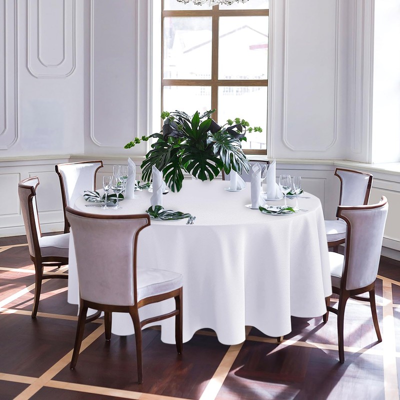 Biscaynebay Textured Fabric Tablecloths 90" Round for Tables' Diameters from 36" to 60", White Water Resistant Tablecloths for Dining, Kitchen, Wedding and Parties etc.