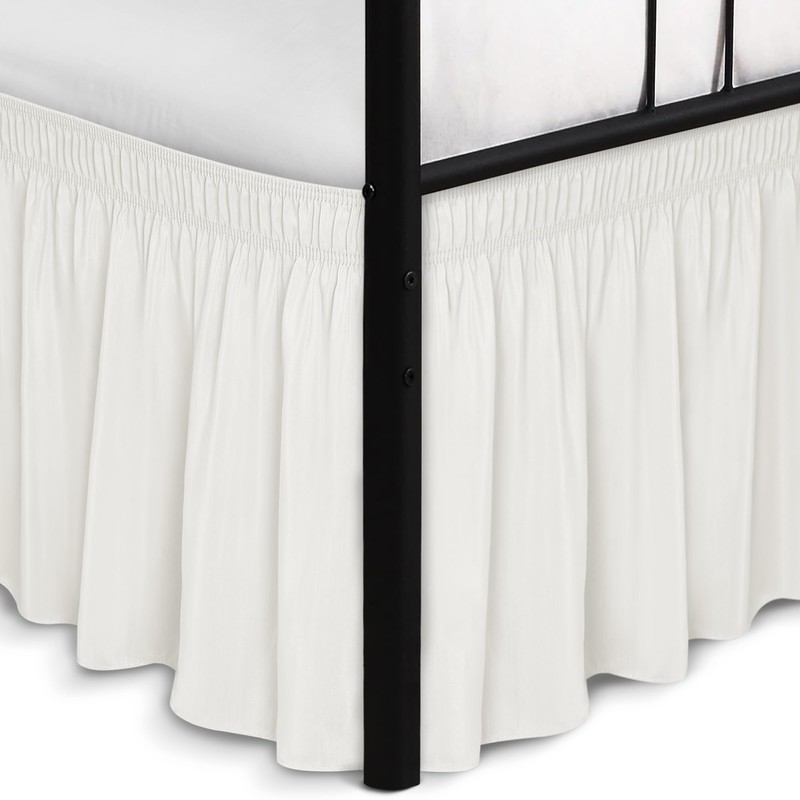 Biscaynebay Wrap Around Bed Skirts with Split Corners for Full Beds 18" Drop, Ivory Adjustable Elastic Dust Ruffles Easy Fit Wrinkle Resistant Silky Luxurious Fabric Machine Washable