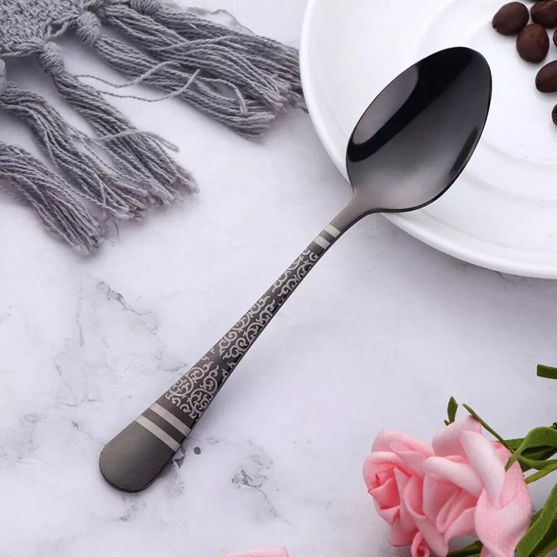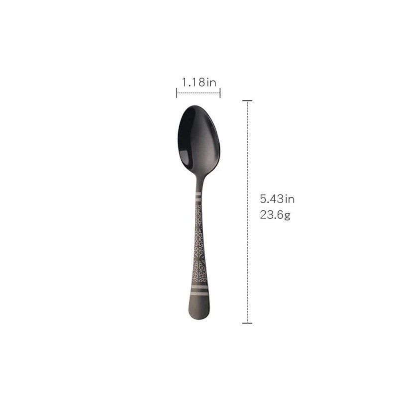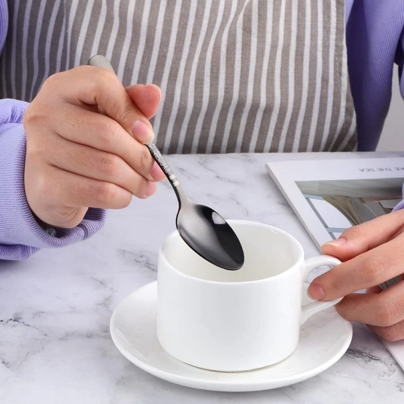 BISDARUN Set Of 6 Black Unique Pattern Design Coffee Espresso Spoons Mini Mingcheng