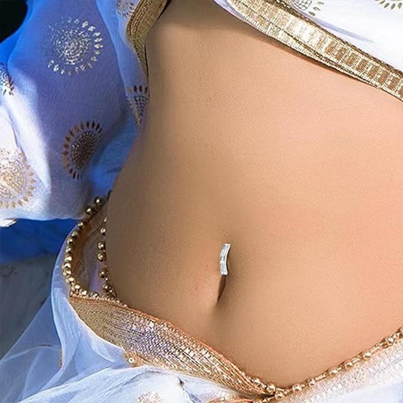 Belly button rings features a unique reverse curve design that is sure to catch anyone's attention. silver belly ring's sparkle will showcase your avant-garde fashion style and personality. Belly button ring1.6*10mm size design, suitable for most abdominal piercings, ensuring comfort and fashion.
