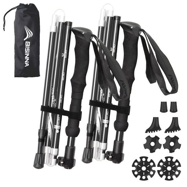 BISINNAトレッキングポール 折畳み 軽量 登山用ストック 2本セット コンパクト アルミ製 長さ調整可能 5段伸縮式 登山 ウォーキング アウトドア ハイキング 遠足 散歩 男女兼用 専用収納袋付き 持ち運びが便利 (115-135cm(ブラック)