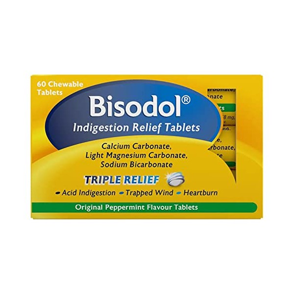 Bisodol Original Peppermint Flavour 60 Chewable Tablets, 60.0 Count