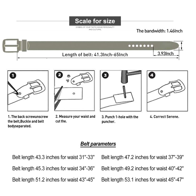- 【Trim To Fit】-The buckle is removable, you can trim the belt strap length by yourself with a hole punch to fit your size if the belt strap is too long for you.