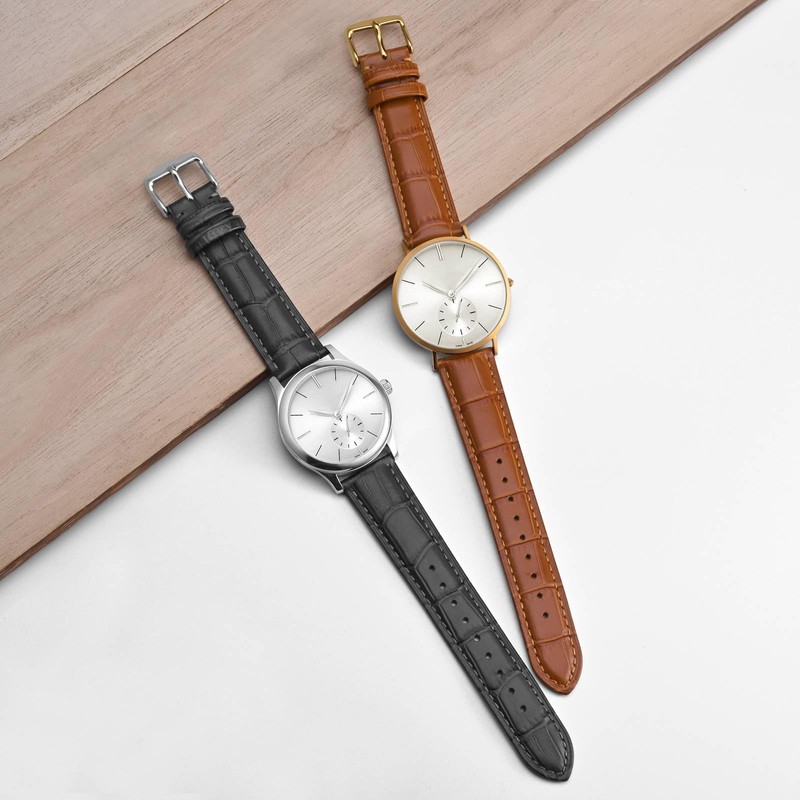 - Watch strap material: high-quality calfskin leather with alligator embossing, inner lining made of soft genuine leather, breathable and comfortable to wear, solid stainless steel clasp
