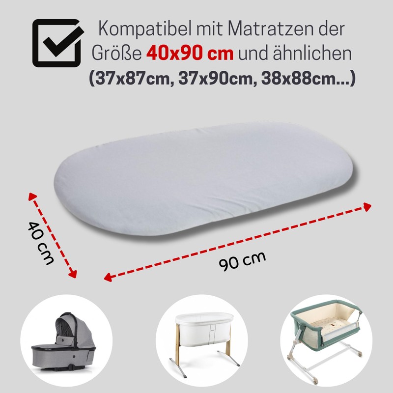 Bisoo Fitted Sheet 90 x 40 cm for Pram, Side Cot - 2-in-1 Mattress Protector 40 x 90 cm Baby Waterproof Fitted Sheet 100% Cotton Jersey Oeko-Tex Certified - Set of 2 Grey