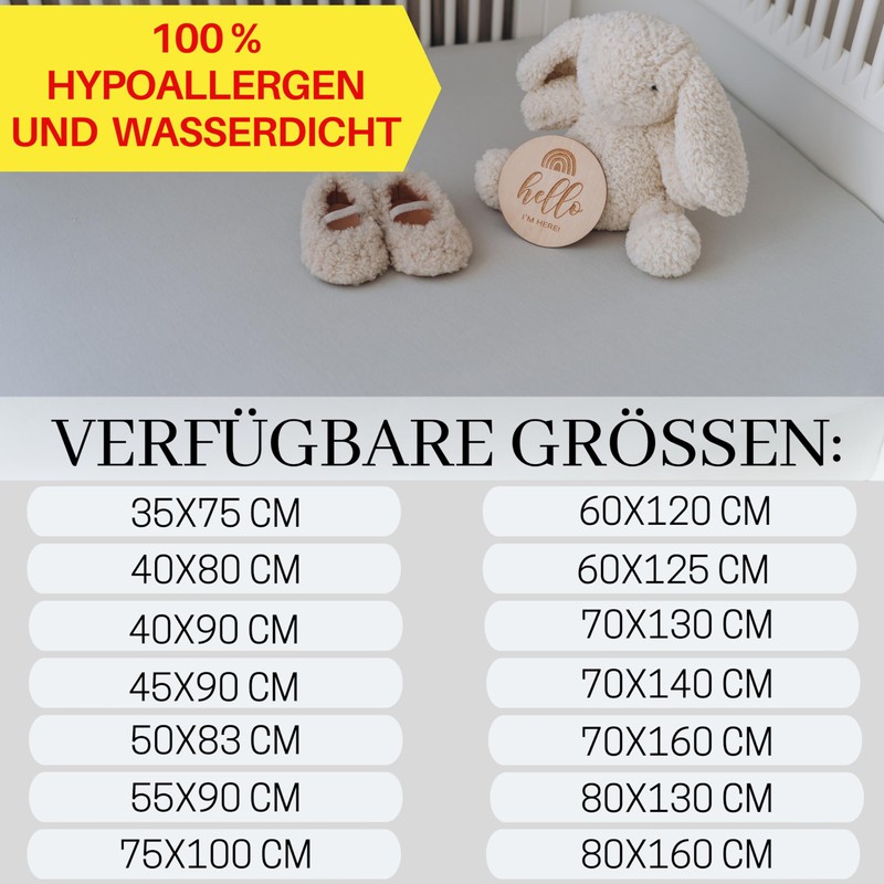 - Waterproof: Under the jersey layer there is a waterproof polyurethane membrane. Thanks to this invention, we can protect baby's sensitive skin from irritation while not worrying about the mattress. The ability to wash them at 60°C in the washing machine helps with adequate disinfection and prevents the growth of bacteria and mites.