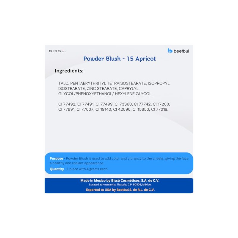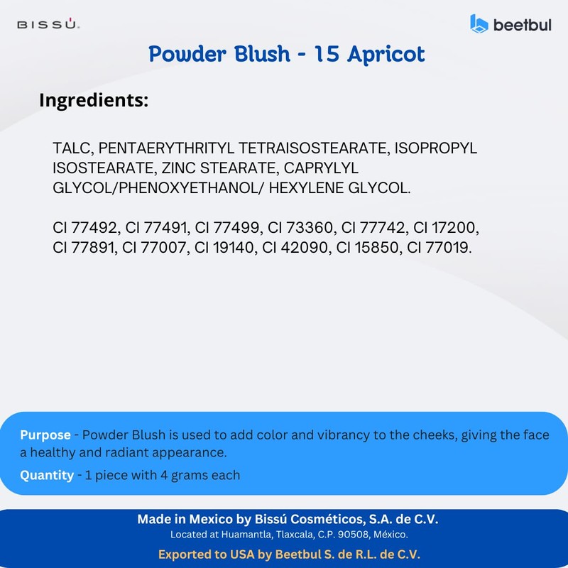 Bissú Blush 4g c/u, Intense Pigmentation, Soft Texture, Matte and Satin Finishes (15 Apricot)