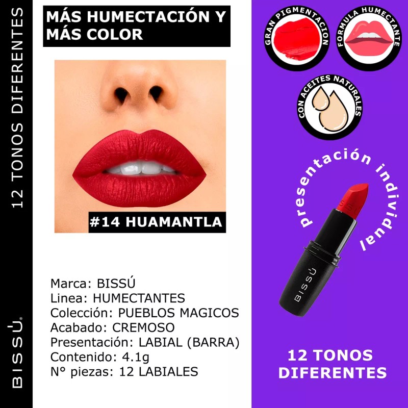 Bissu Labiales Humectantes Pueblos Mágicos tonos cafés/rojos (12 tonos)