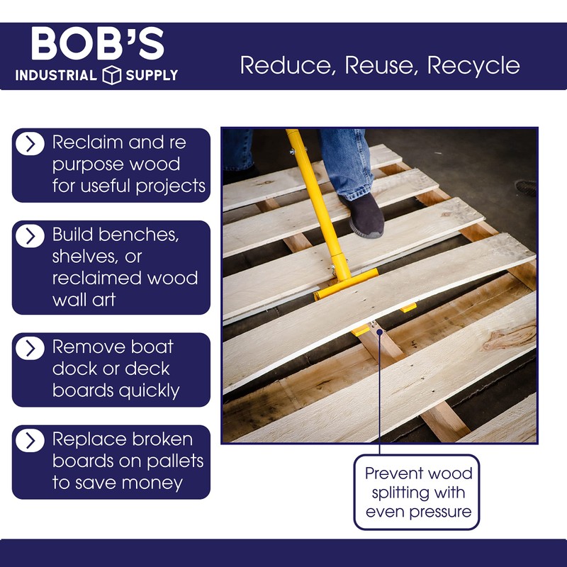 - EASY TO USE: If you are working on one end of a pallet, face the pallet disassembly tool legs towards the other end, and pull the pallet crowbar shaft upwards; Pulling in improper direction can cause pallet wrecker to lift pallet