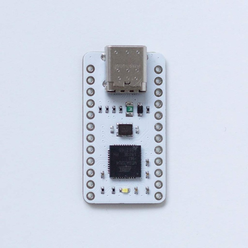 - Pro-micro compatible microcontroller board featuring the Atmel ATmega32U4