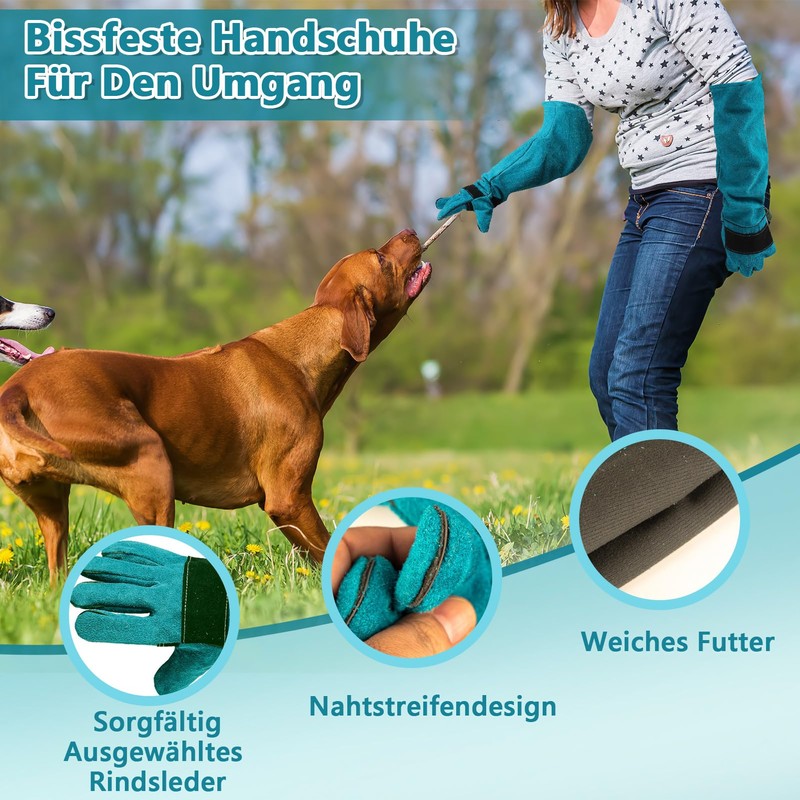 Bite Resistant Protective Gloves 60 cm Cowhide Anti-Bite Work Gloves for Animals, Gardening & Welding - Thorn-Resistant & Cut-resistant Gloves for Dogs, Cats, Snakes (Men & Women)