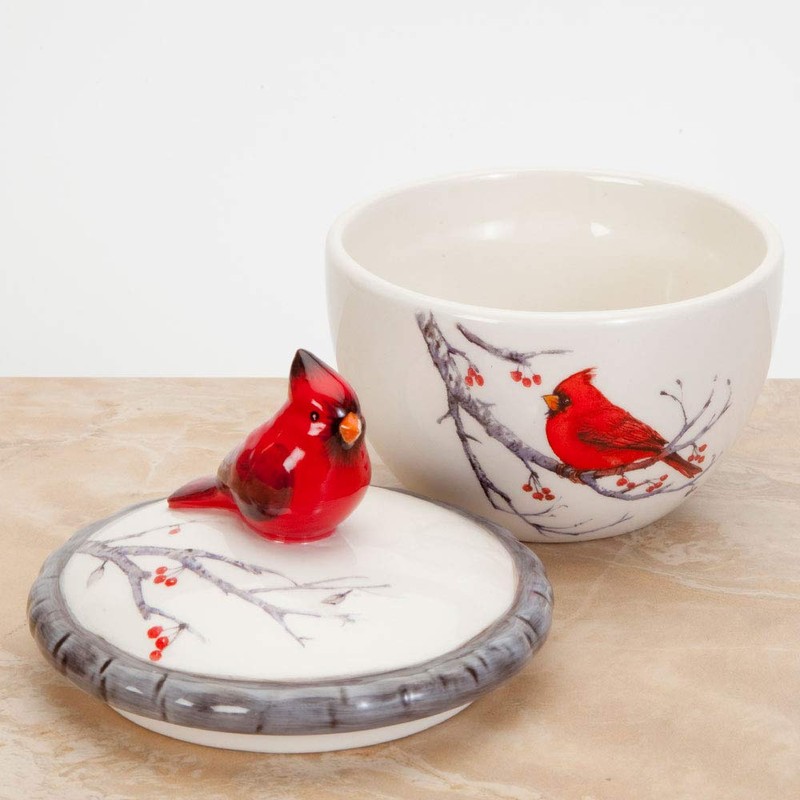 - Cardinal Keepsake Box: Our Bits and Pieces Cardinal Trinket Box, featuring a bright red dimensional cardinal perched on top for the handle, will hold your rings and earrings in place.