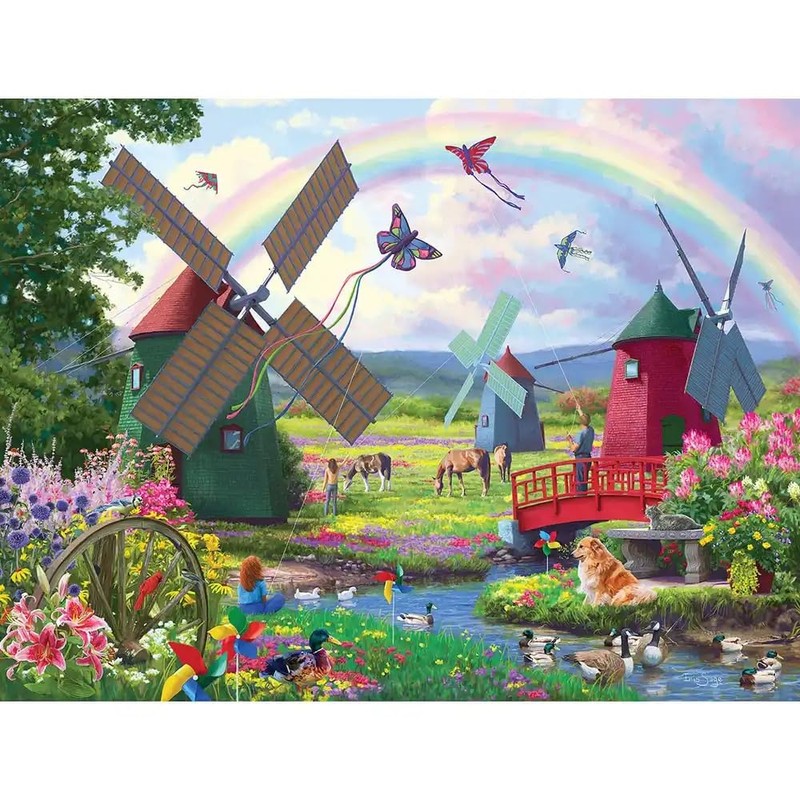 Bits and Pieces The Windmills 300-Piece Jigsaw Puzzle, 46 x 61 cm Completed Size, Countryside Scene with Colourful Windmills