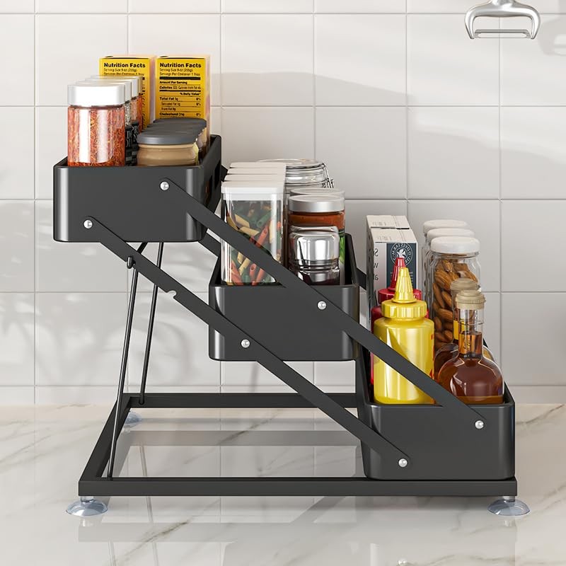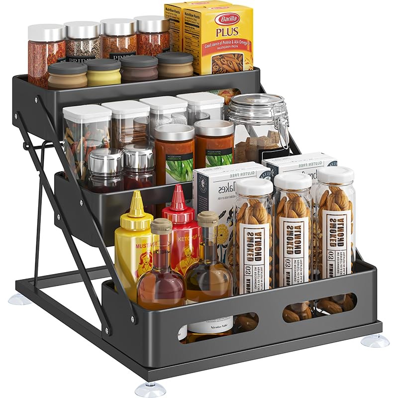 - 【Breathable & Multi-Layered Storage】The open-grid basket design allows for excellent ventilation, preventing water buildup and keeping your spices dry. The multi-tiered layout helps you organize bottles of different sizes efficiently.