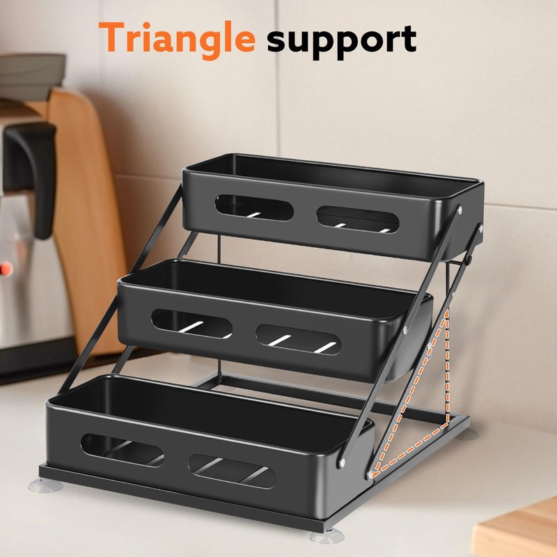 - 【Sturdy & Stable with Strong Load-Bearing Capacity】Designed with a triangular support structure, this spice rack offers excellent stability and durability. The reinforced carbon steel construction ensures a strong load-bearing capacity without wobbling.