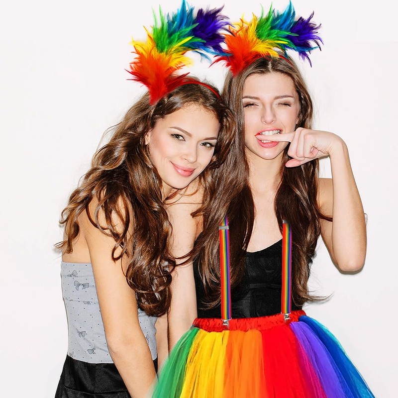 - What is better for fancy dress or carnival than the bright colours of the rainbow? The rainbow fancy dress costumes for women contains rainbow tulle skirt + multi-coloured feather headband + colourful Y shape braces, is definitely an eye-catcher