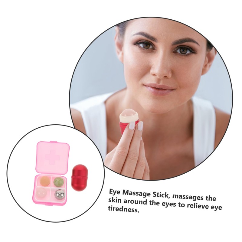 BIUDECO 1 Set Cooling Eye Stick and Facial Massage Roller Kit for Puffiness Volcanic and Stone Rollers Stylish Casing for Skincare Routine and Oil Absorption