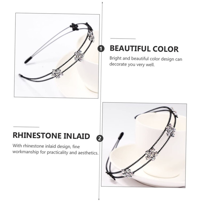 fancy headband The simple and gorgeous design of this headband will ensure its practicability and popularity among headpieces decoration.rhinestone headband The double-layer rhinestone inlaid flower hair is made of with fine workmanship. The structure and craft make it looks unique and distinctive