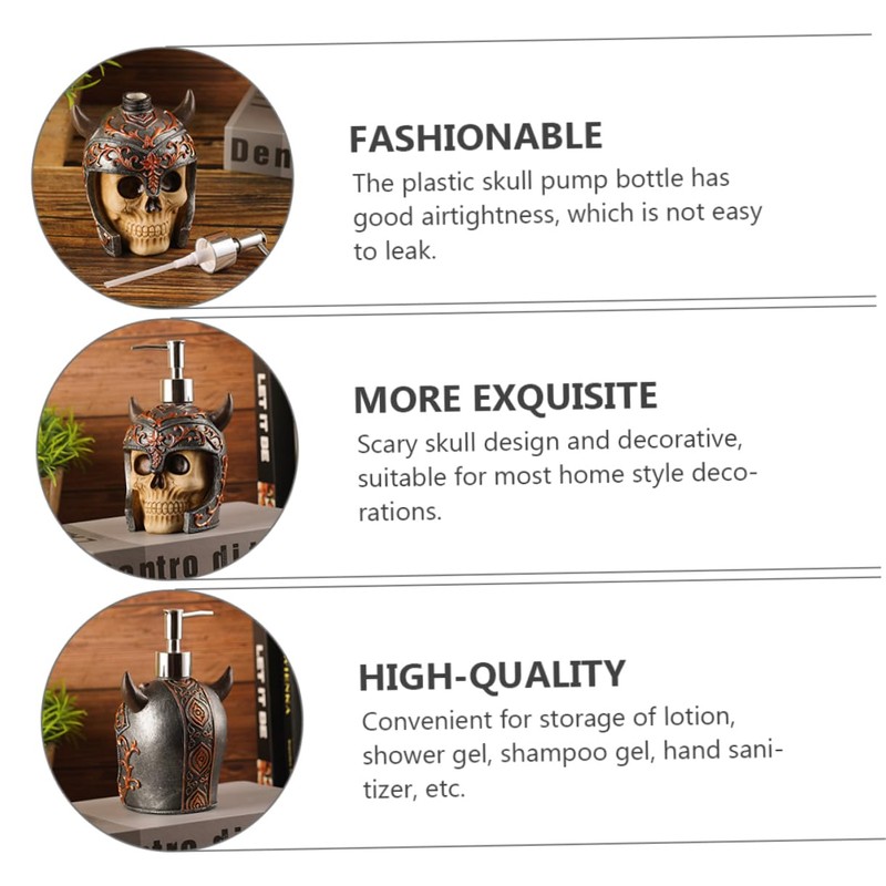 - Portable and lightweight, easy to carry out, suitable for home, office, camping, traveling, etc skull hand soap dispenser.