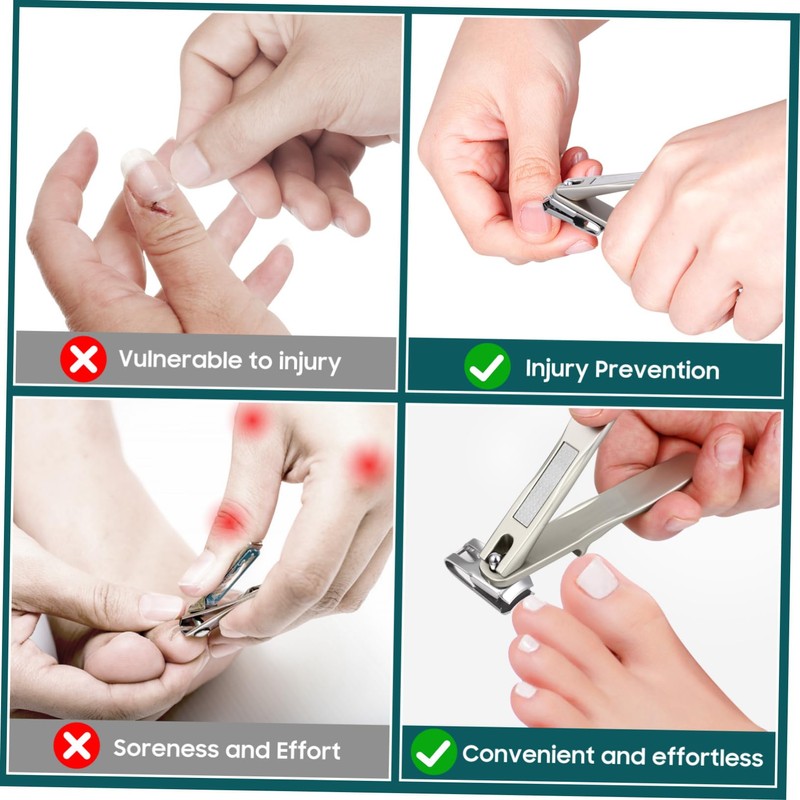 - No splash nail clip-- the nail trimmer adopts ergonomic long handle design, which allows you to grip very comfortably.
