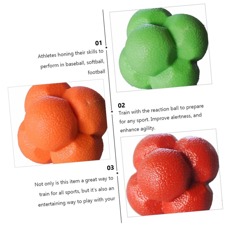 Exercise Balls A fun exercise that is hard to predict, have to stay on your toes and keep moving.Hexagonal Reaction Ball is made of highly durable, material, easy to carry and use.bounce It works against all hard surfaces or walls and can be used as a fun way to improve technique in drills and training exercises