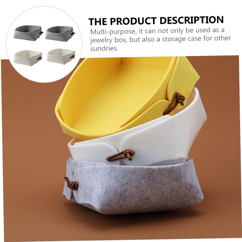 Sundries Box It is helpful to save space for your desktop and keep your desktop neat and tidy.Felt Storage Container The simple design makes it a nice decoration.Mini Sundries Organizer Simple and compact size storage boxes design, it is to hold most kinds of sundries, cosmetics, watches, etc.key storage box This multi-purpose felt storage case is a wonderful accessory for home use