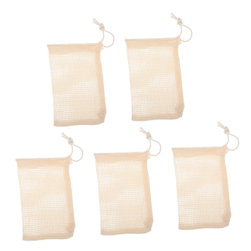 BIUDECO 5Pcs Natural Sisal Soap Bags Exfoliating Mesh Pouch for Bar Soap Efficient Foaming Gentle Cleansing Tool for Body and Facial Care Beige for Bath Shower Use