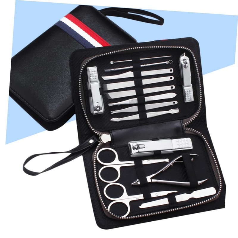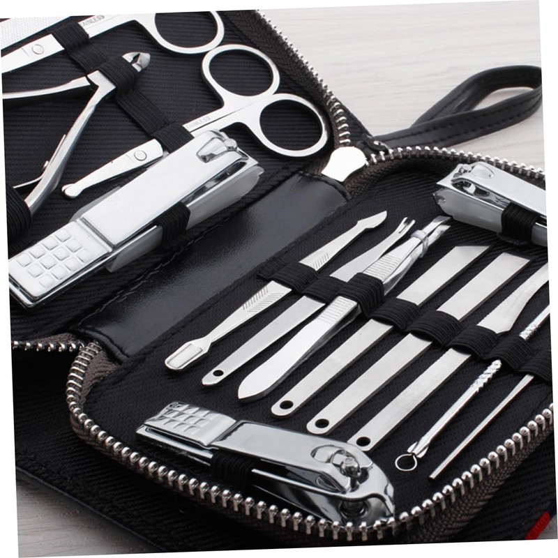 Pedicure set This item is a set of 15pcs manicure pedicure tools set, which are made of hard and durable carbon steel and packed in a PU bag.nail sets tools you need for normal grooming, manicure or pedicure.nail set With different tools such as tweezers, clipper, scissor, nail clipper, nail file, ear etc