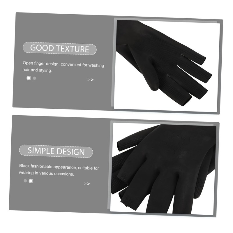 Hair Dye Accessories Made from rubber material, these gloves are soft and gentle on the skin, ensuring that your hands remain unharmed during use.Hair Dye Styling Gloves With their waterproof and oil-resistant properties, these gloves shield your hands.Salon Rubber Gloves The fingerless design allows for easy hair washing and styling, making them a convenient choice for salon professionals.Hair Color Accessories The sleek color adds a touch of style, making them suitable for various occasions.Gloves The Hair Salon Rubber Gloves are designed to provide hand protection without compromising comfort