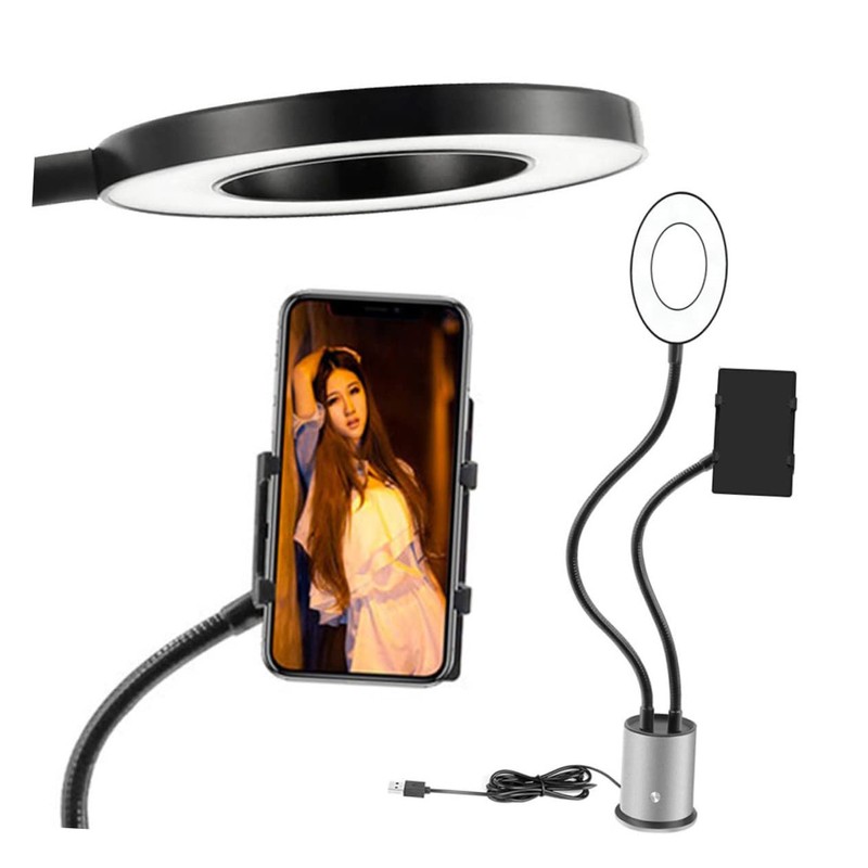 multifunctional phone holder Descripiton This ring light with phone holder is a convenient tool for people who love taking photos, watching vidoes or making live streaming.phone holder with light Its long and flexible arm allow you to or bend it to any shape at any angle, which means you can have a better angle and the ring light will provide a good light conditon